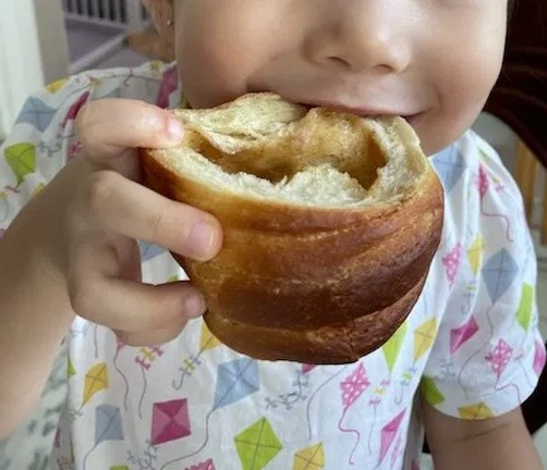 Baked this with the kids as we were left with 130g soy milk in the fridge and 180g bread flour, so we have to tweak the recipe the best we could kids complained that the dough is too sticky for them but we did it anyway !