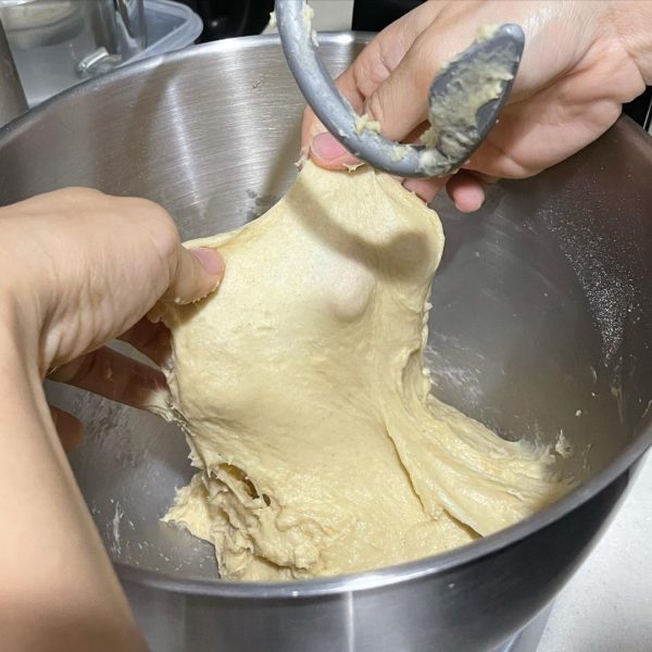 - Add butter and continue to knead till windowpane stage(about 15 minutes on medium speed)